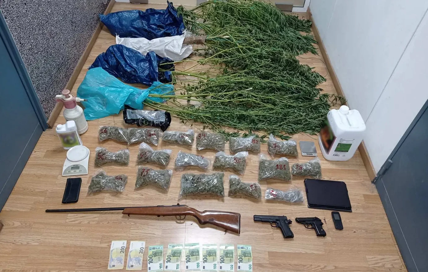 Σε επακόλουθες έρευνες που πραγματοποιήθηκαν σε οικίες και λοιπούς χώρους που χρησιμοποιούσαν, συνολικά βρέθηκαν και κατασχέθηκαν: