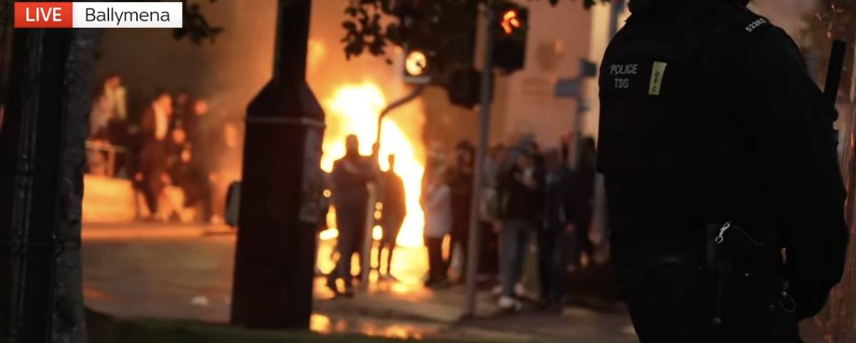 Η αστυνομία αναφέρει πως βρίσκεται αντιμέτωπη με διατάραξη της δημόσιας τάξης σε τμήμα της πόλης, η οποία απέχει περίπου 45 χιλιόμετρα από το Μπέλφαστ, καλώντας τους πολίτες να αποφύγουν την περιοχή.