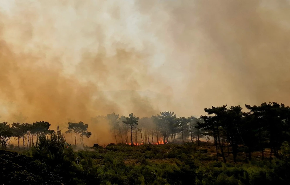 Η Πολιτική Προστασία απέστειλε μήνυμα μέσω του 112, καλώντας τους κατοίκους των οικισμών Βέσσα, Λιθί, Ελάτα και Αρμόλια, στο νοτιοδυτικό τμήμα του νησιού, να απομακρυνθούν άμεσα λόγω δασικής πυρκαγιάς. Οι πολίτες καλούνται να κινηθούν μέσω Κοντελόπου προς το κλειστό γυμναστήριο Λιβαδίων και να συμμορφώνονται με τις οδηγίες των Αρχών για την ασφάλειά τους.