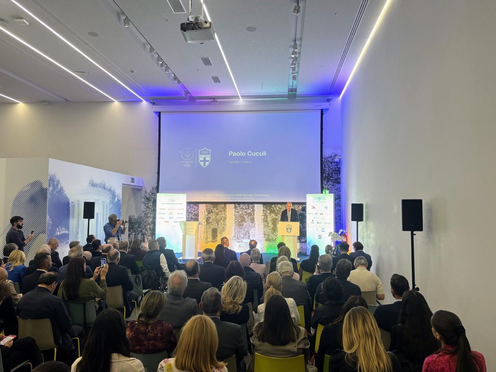 Ο Πρέσβυς της Ιταλίας στην Ελλάδα, κ. Paolo Cuculi, συμμετείχε στη συνέντευξη Τύπου που δόθηκε σε πλήθος δημοσιογράφων για την παρουσίαση των επερχόμενων Χειμερινών Ολυμπιακών και Παραολυμπιακών Αγώνων Milano Cortina 2026 στο Ολυμπιακό Μουσείο Αθήνας. Στην εκδήλωση παρευρέθηκαν, μεταξύ άλλων, ο Πρόεδρος της Ελληνικής Ολυμπιακής Επιτροπής, Ισίδωρος Κούβελος, και ο Γενικός Γραμματέας Αθλητισμού, Γιώργος Μαυρωτάς.