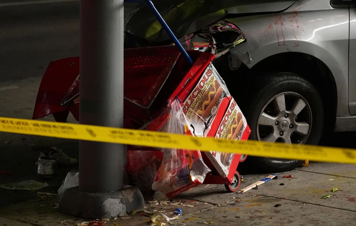 Το αυτοκίνητο, είπε, χτύπησε προφανώς πρώτα ένα φορτηγό-καντίνα έξω από το κέντρο και στη συνέχεια ένα σταντ και έπεσε πάνω σε μια μεγάλη ομάδα ανθρώπων.