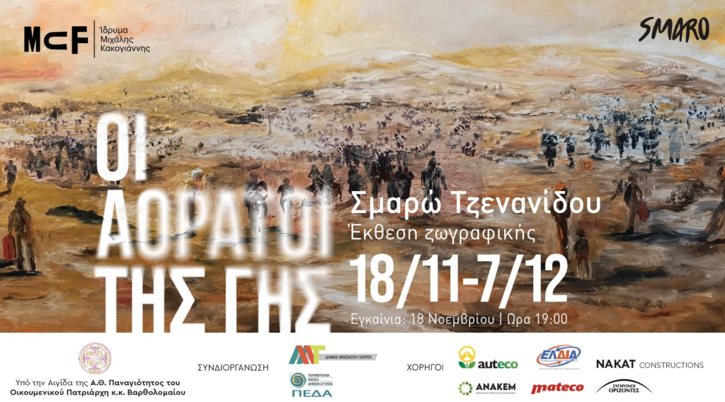 Την έκθεση συνδιοργανώνουν ο Δήμος Μοσχάτου – Ταύρου και η Περιφερειακή Ένωση Δήμων Αττικής (ΠΕΔΑ) και τελεί υπό την Αιγίδα της Α.Θ. Παναγιότητας του Οικουμενικού Πατριάρχη κ.κ. Βαρθολομαίου. Χορηγοί της έκθεσης ζωγραφικής οι εταιρείες KTEO auteco, ΕΛΔΙΑ, ΝΑΚΑΤ Constructions, ANAKEM, mateco και Εκδόσεις Σύγχρονοι Ορίζοντες.