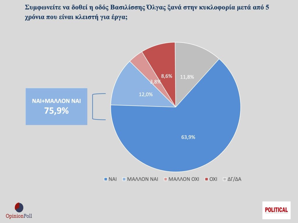 Περίπου το 75,9% των πολιτών συμφωνεί με την πρόταση για την παράδοση της Βασιλίσσης Όλγας στην κυκλοφορία, ενώ το 86,9% θεωρεί το πρόγραμμα κατεδάφισης 70 ετοιμόρροπων κτιρίων ιδιαίτερα κρίσιμο για την ασφάλεια της πόλης. Ταυτόχρονα, το 72,7% δηλώνει ότι υποστηρίζει τις δράσεις κάθαρσης της δημοτικής αρχής όπως για παράδειγμα την αντιμετώπιση της εγκληματικής οργάνωσης με τα τραπεζοκαθίσματα.