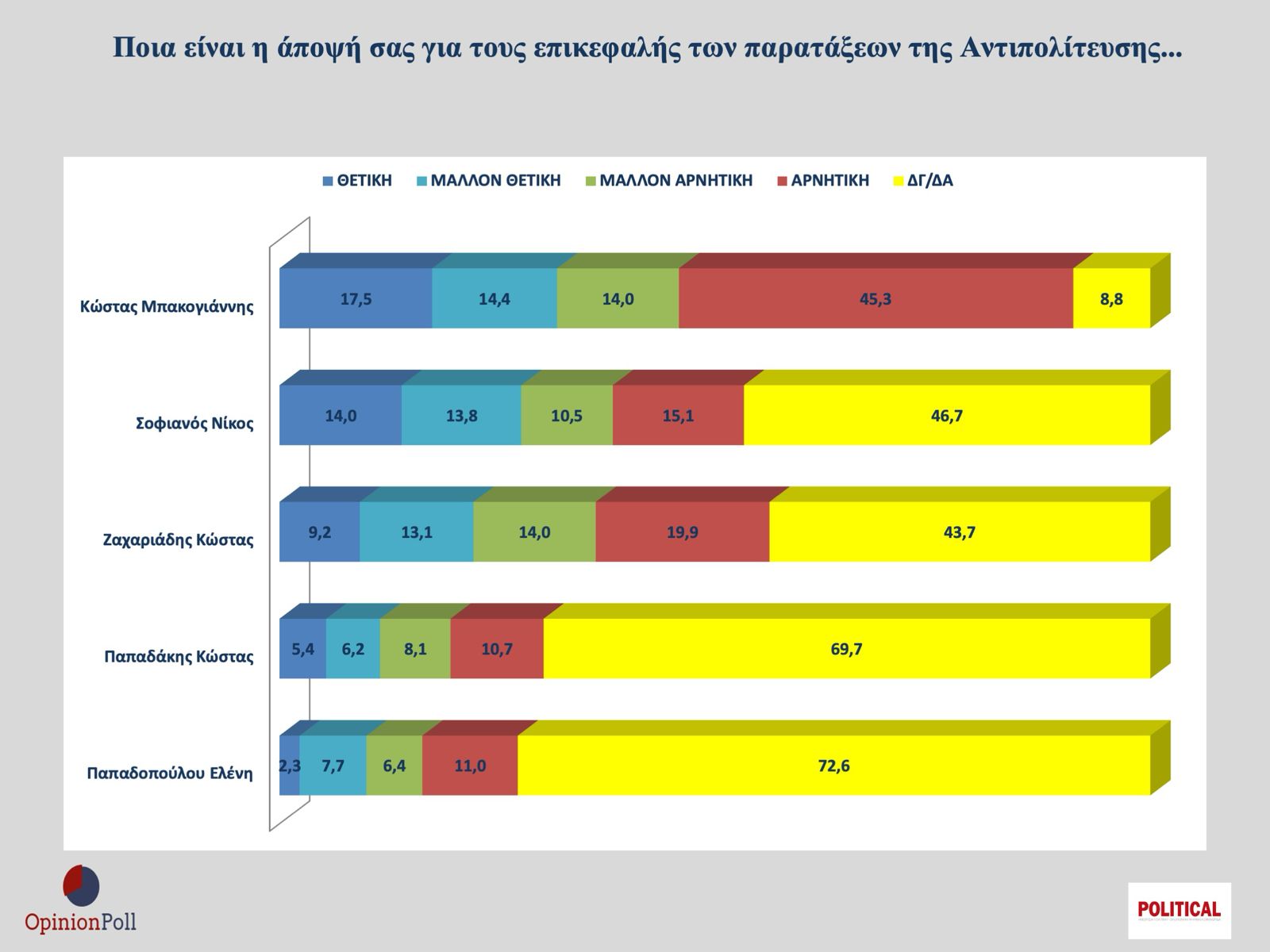Στο 59,3% η αρνητική άποψη για Μπακογιάννη – Τι πιστεύουν οι πολίτες για τους επικεφαλείς των παρατάξεων της αντιπολίτευσης