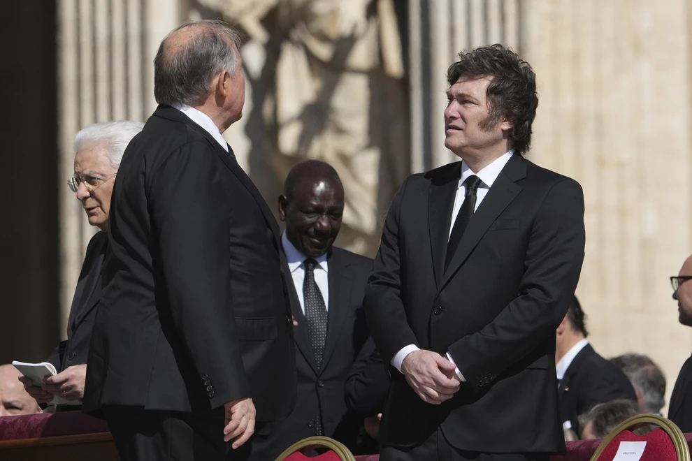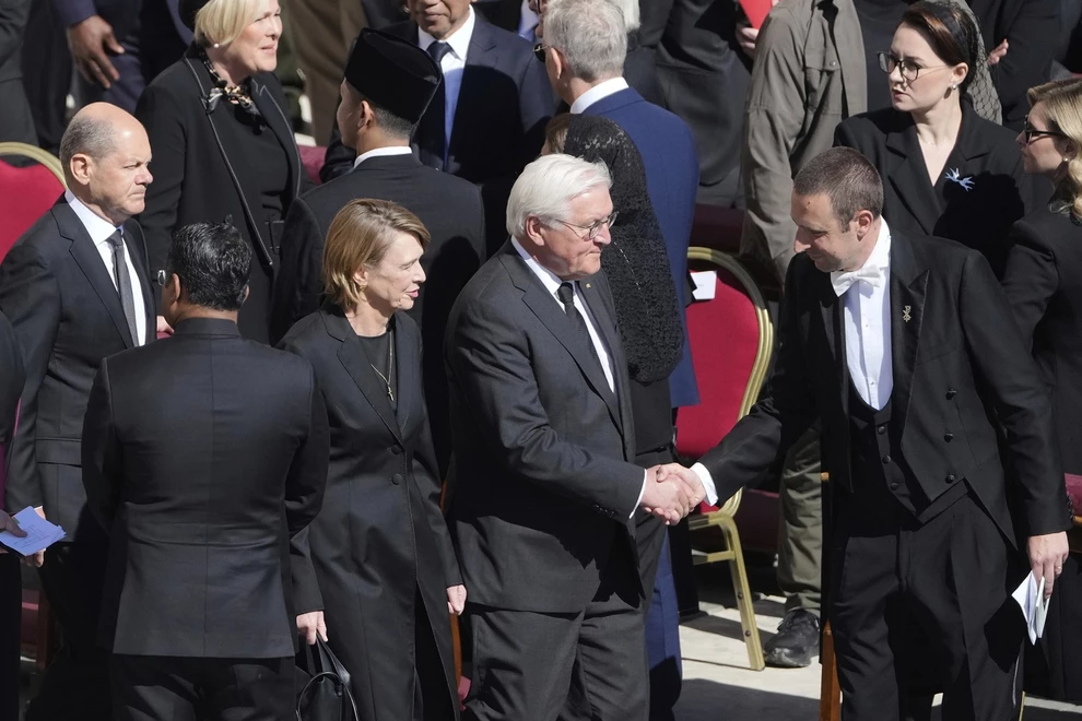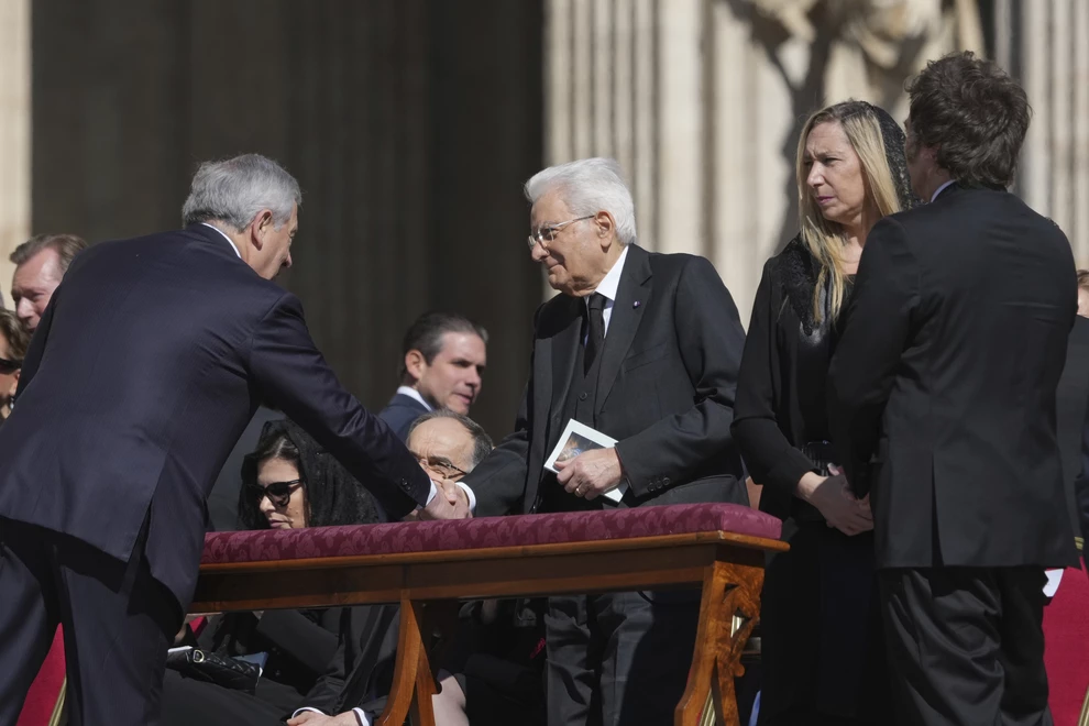 Πλήθος αρχηγών κρατών και πολιτικών ηγετών στην κηδεία του Πάπα Φραγκίσκου Posted by Από Newsique Team 7 μήνες πρίν Τελευταία Ενημέρωση 26 Απριλίου, 2025 Η κηδεία του Πάπα Φραγκίσκου συγκέντρωσε στη Ρώμη πλήθος αρχηγών κρατών και πολιτικών ηγετών, περίπου 50, μεταξύ των οποίων και ο πρωθυπουργός Κυριάκος Μητσοτάκης. Δείτε εικόνες με τους αρχηγούς κρατών και τους πολιτικούς ηγέτες: Εικόνες: AP