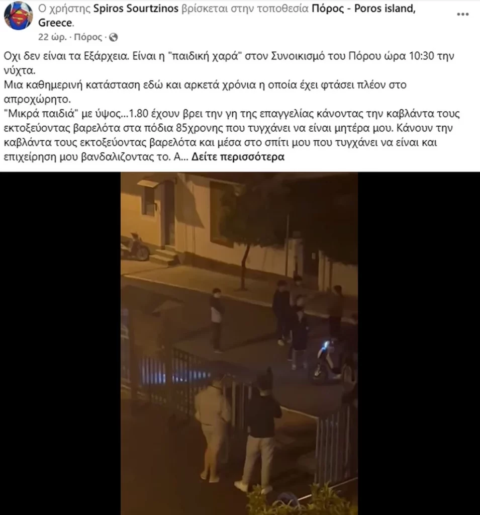 «Οχι δεν είναι τα Εξάρχεια. Είναι η “παιδική χαρά” στον Συνοικισμό του Πόρου ώρα 10:30 την νύχτα.