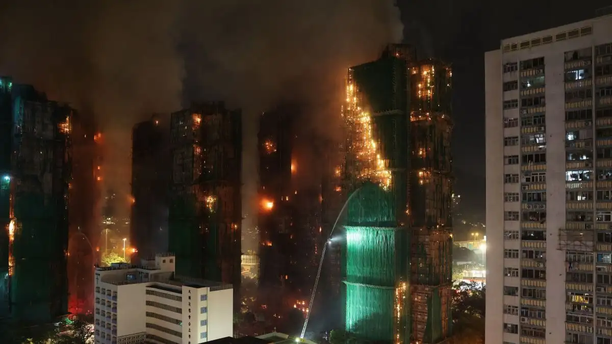 Πυροσβέστες αγωνίζονταν για την κατάσβεση της πυρκαγιάς, ενώ πυκνός μαύρος καπνός υψωνόταν πάνω από τους πύργους των 31 ορόφων, με τις φλόγες να φωτίζουν τον νυχτερινό ουρανό. Το κτιριακό συγκρότημα Wang Fuk Court αποτελείται από οκτώ κτίρια που περιλαμβάνουν σχεδόν 2.000 διαμερίσματα.
