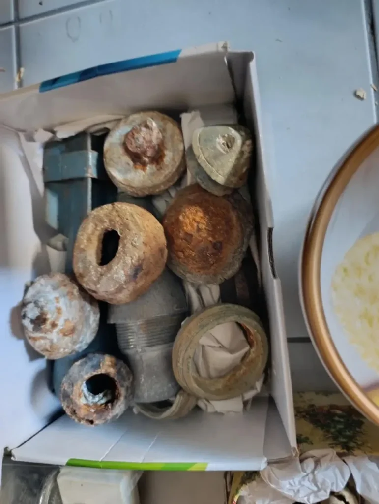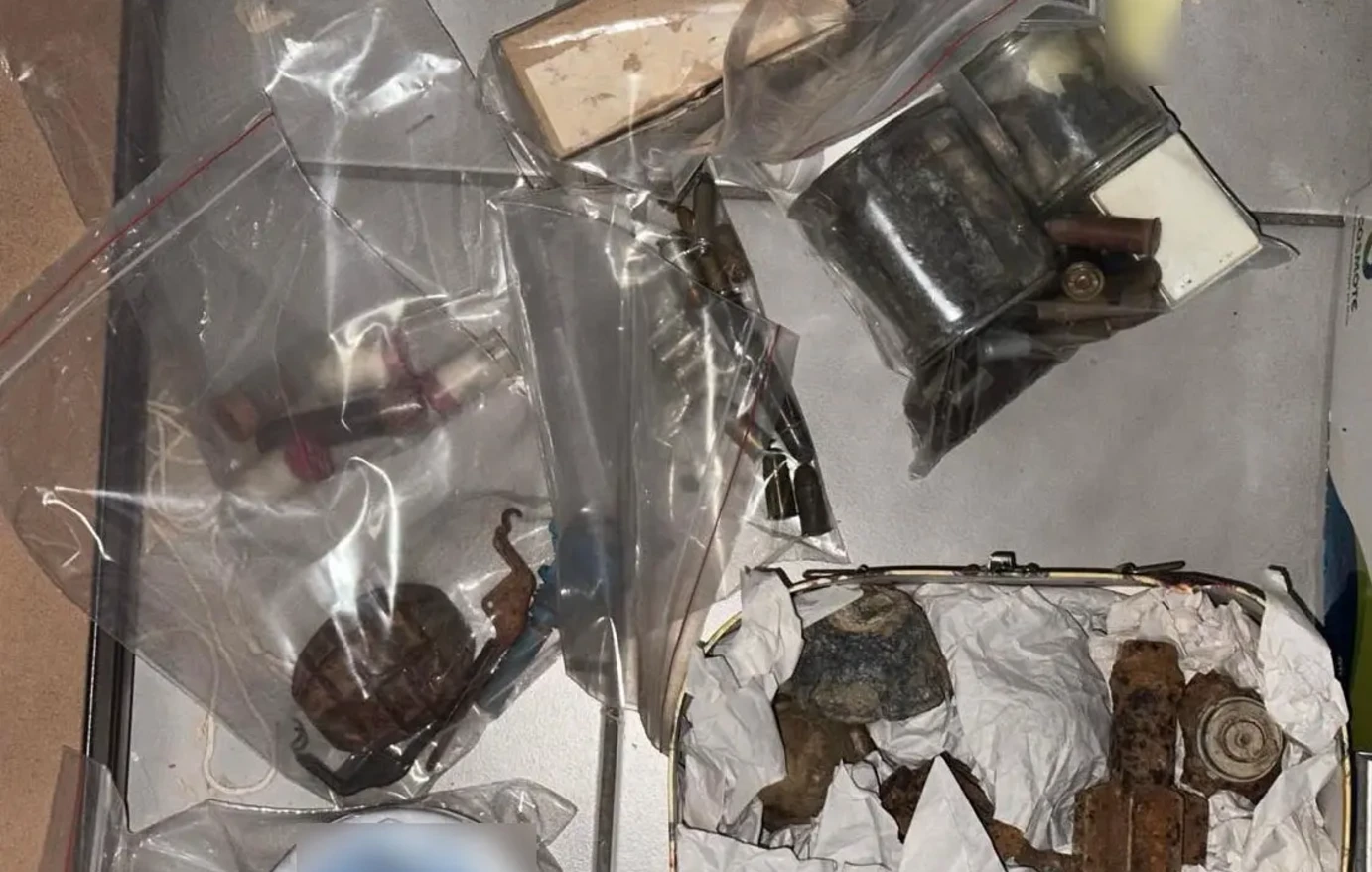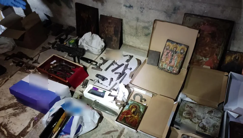 Μεταξύ των πυρομαχικών που εντοπίστηκαν ήταν κλείστρα από διάφορα όπλα του Β’ παγκοσμίου πολέμου, δύο μοχλοί απελευθέρωσης χειροβομβίδας, μια αμυντική χειροβομβίδα, διάφορα οξειδωμένα εξαρτήματα από όπλα, φυσίγγια διαφόρων διαμετρημάτων, δύο σιδερογροθιές, ένα ζευγάρι χειροπέδες, δύο πτυσσόμενα γκλομπ και 14 θρησκευτικές εικόνες.