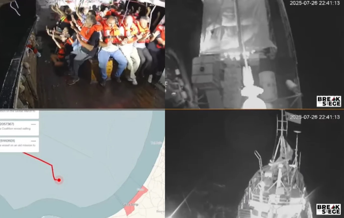 Tο ισραηλινό υπουργείο Εξωτερικών μέσω X αναφέρει ότι «το ισραηλινό (πολεμικό) ναυτικό εμπόδισε το πλοίο Navarn (σ.σ. η αρχική ονομασία του) να εισέλθει παράνομα στον θαλάσσιο χώρο ανοικτά των ακτών της Γάζας. Το σκάφος οδηγείται με ασφάλεια στις ακτές του Ισραήλ. Όλοι οι επιβαίνοντες είναι ασφαλείς».