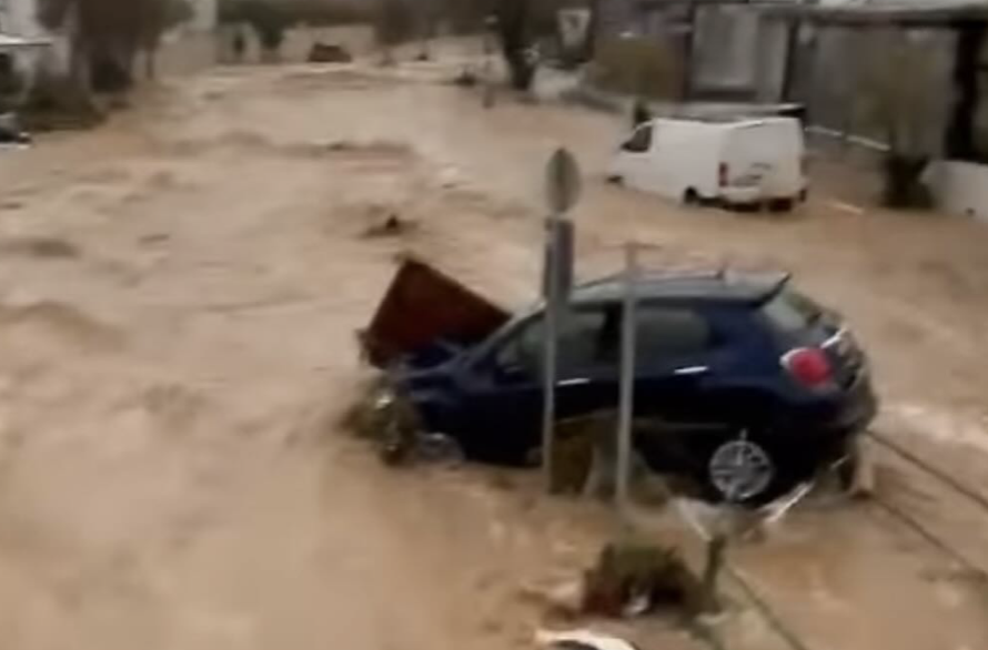 Στο έλεος της κακοκαιρίας βρέθηκε ειδικότερα η Πάρος με τους δρόμους να μοιάζουν με ποτάμια και τα ορμητικά νερά να παρασύρουν αυτοκίνητα και ό,τι άλλο έβρισκαν στο πέρασμά τους.