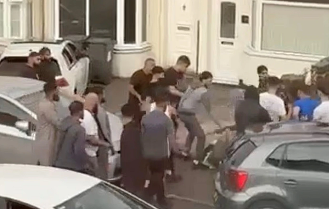 Η συμπλοκή σημειώθηκε στη Showell Green Lane, όταν περίπου 20 άνδρες άρχισαν να λογομαχούν και να έρχονται στα χέρια, ενώ περαστικοί και οδηγοί παρακολουθούσαν τρομαγμένοι.