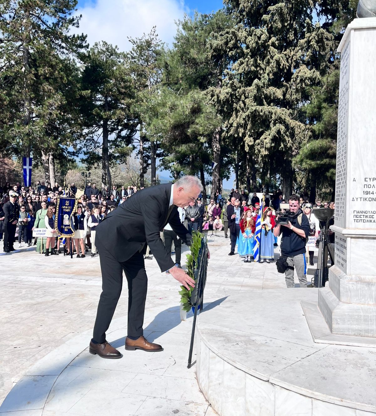 “148 χρόνια οι Μακεδόνες, όλοι οι Έλληνες, τιμούμε εκείνους που έδωσαν τη ζωή τους στο όνομα της Πατρίδας και της Ελευθερίας. Υποκλινόμαστε στη θυσία τους. Ενωμένοι τιμούμε την Ελλάδα που αντιστέκεται. Την Ελλάδα που υπερασπίζεται τα κυριαρχικά μας δικαιώματα. Τιμούμε την Ελλάδα της υπερηφάνειας, της ευημερίας, την Ελλάδα της εθνικής αυτοπεποίθησης. Ας είναι αιωνία η μνήμη τους”, τόνισε ο Υφυπουργός Ανάπτυξης Σταύρος Καλαφάτης σε δήλωσή του στο πλαίσιο των εκδηλώσεων εορτασμού της 148ης Επετείου της Επανάστασης του Ολύμπου (1878), στο Λιτόχωρο, όπου παρέστη ως Εκπρόσωπος της Κυβέρνησης και του Πρωθυπουργού Κυριάκου Μητσοτάκη.