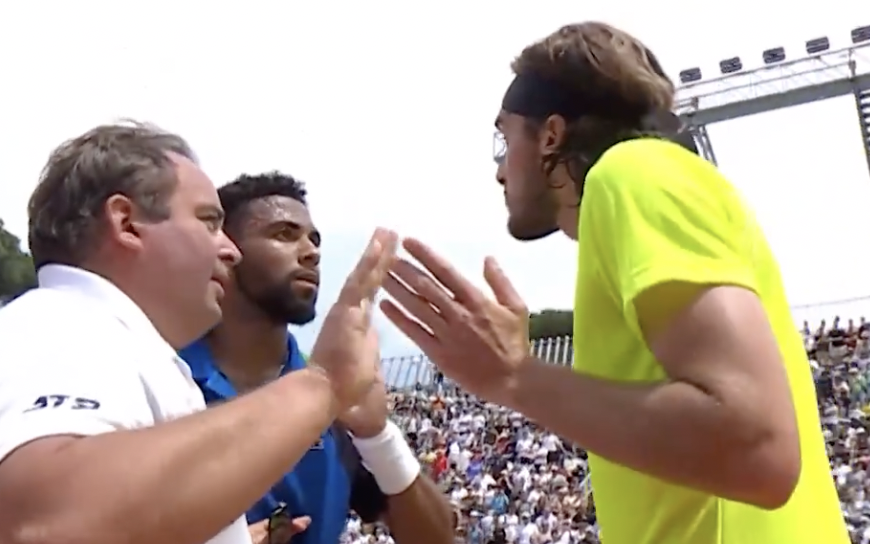 Στο τέλος της αναμέτρησης, κατά την οποία γνώρισε 4η σερί ήττα από τον νεαρό, ο Έλληνας τενίστας έκανε παράπονα στον Γάλλο για τις έντονες αντιδράσεις του, μετά από ένα χτύπημα του 26χρονου στο σώμα του αντιπάλου του, κατά τη διάρκεια του δεύτερου σετ.