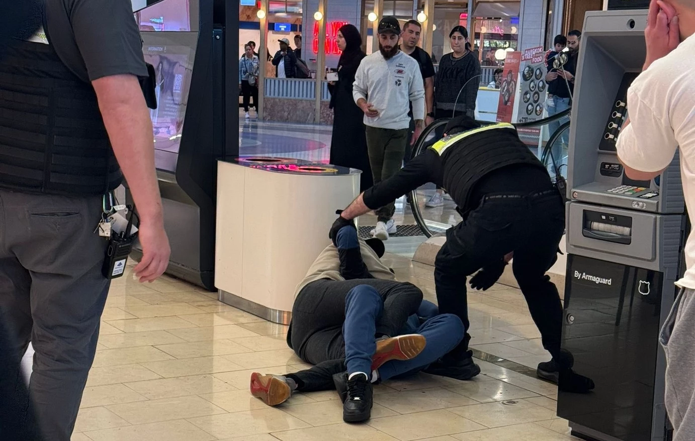 Παράλληλα, σε ένα βίντεο φαίνονται καταναλωτές να τρέχουν πανικόβλητοι για να εγκαταλείψουν το εμπορικό κέντρο, την ώρα που βρισκόταν σε εξέλιξη η συμπλοκή.