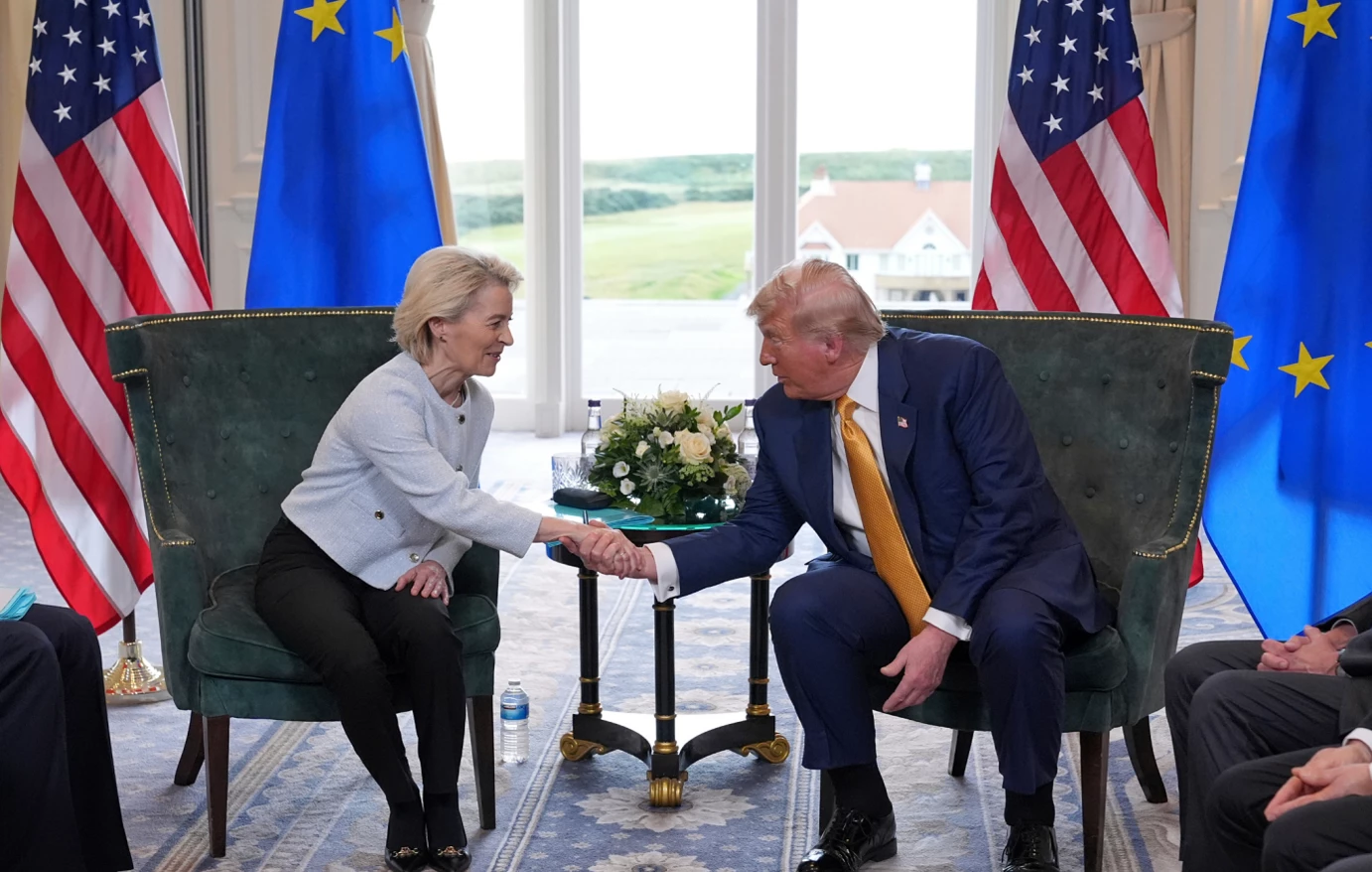 Ο Αμερικανός πρόεδρος ανακοίνωσε «τη μεγαλύτερη εμπορική συμφωνία» που έχει επιτευχθεί ποτέ, μεταξύ των ΗΠΑ και της Ευρωπαϊκής Ένωσης, κατά τις συνομιλίες που είχε σήμερα στο Τέρνμπερι της Σκωτίας με την πρόεδρο της Ευρωπαϊκής Επιτροπής Ούρσουλα φον ντερ Λάιεν.