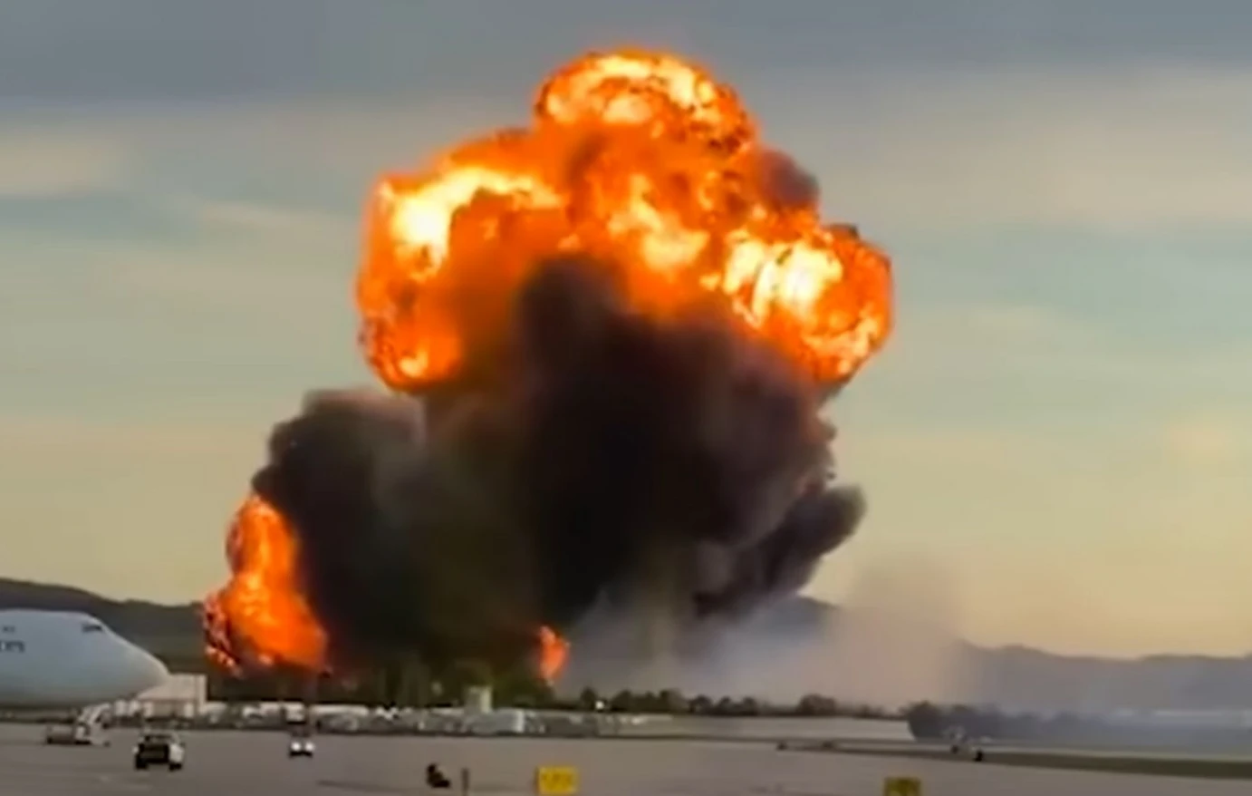 Πλάνα από τον αέρα, από ελικόπτερα τοπικών τηλεοπτικών δικτύων, δείχνουν μεγάλη πυρκαγιά σε έκταση εκατοντάδων μέτρων σε περιοχή όπου βρίσκονται υπόστεγα και χώροι στάθμευσης, καθώς φάροι οχημάτων των υπηρεσιών άμεσης δράσης και πρώτων βοηθειών διακρίνονται σε μικρή απόσταση.