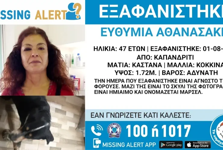 Αναζητείται η Ευθυμία Αθανασάκη που χάθηκε την 1η Αυγούστου, με ανοιχτό το ενδεχόμενο να κινδυνεύει η ζωή της. Το «Χαμόγελο του Παιδιού» εξέδωσε συναγερμό για την εξαφάνιση της 47χρονης Ευθυμίας Αθανασάκη από το Καπανδρίτι, της οποίας τα ίχνη χάθηκαν την ...