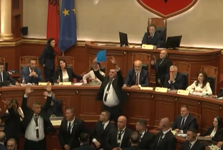 Χαμός έγινε στο αλβανικό Κοινοβούλιο, όταν ο επικεφαλής της Κοινοβουλευτικής Ομάδας του Δημοκρατικού Κόμματος, Γκαζμέντ Μπαρντί, πέταξε χαρτιά και βιβλία προς τον πρωθυπουργό Έντι Ράμα. Η ένταση ξέσπασε μετά την απόφαση της πλειοψηφίας να εγκρίνει το κυβερνητικό πρόγραμμα και το ...