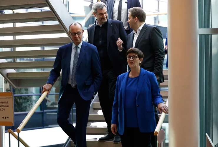 Έξι εβδομάδες μετά τις εκλογές στη Γερμανία, η Χριστιανική Ένωση CDU/CSU και οι Σοσιαλδημοκράτες SPD ανακοίνωσαν τη συμφωνία κυβερνητικής συνεργασίας, που παρουσίασαν το απόγευμα οι πρόεδροι των μελλοντικών κυβερνητικών εταίρων Φρίντριχ Μερτς (CDU), Μάρκους Ζέντερ (CSU), Λάρς Κλινκμπαϊλ και Σάσκια ...
