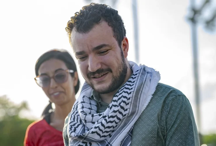 Ο Μαχμούντ Χαλίλ, γνωστός αγωνιστής των κινητοποιήσεων υπέρ των Παλαιστινίων στην πανεπιστημιούπολη του Κολούμπια, αφέθηκε ελεύθερος μετά από παραμονή πάνω από τρεις μήνες σε κέντρο κράτησης στη Λουιζιάνα των ΗΠΑ. Σε εικόνες που μετέδωσαν αμερικανικά τηλεοπτικά δίκτυα διακρίνεται ο Χαλίλ ...