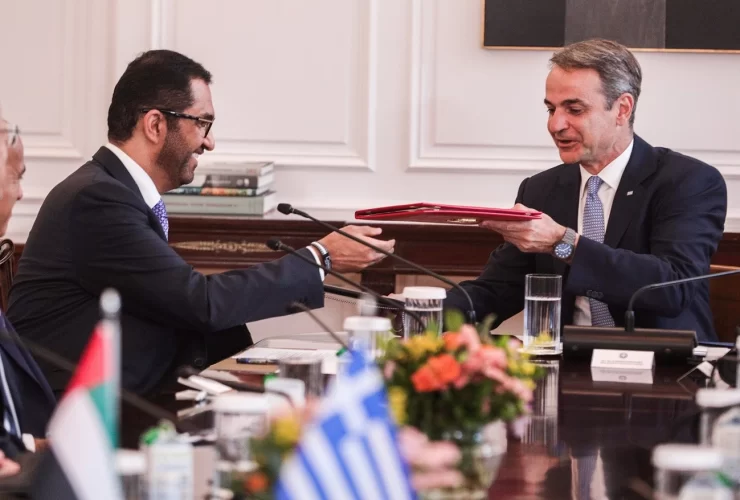 Ο πρωθυπουργός Κυριάκος Μητσοτάκης συναντήθηκε σήμερα με τον Υπουργό Βιομηχανίας και Προηγμένης Τεχνολογίας των Ηνωμένων Αραβικών Εμιράτων Δρ. Sultan Al Jaber, στο Μέγαρο Μαξίμου. Κατά την έναρξη της συνάντησης των αντιπροσωπειών ανακοινώθηκε η ανανέωση της Σύμβασης Αποφυγής Διπλής Φορολογίας μεταξύ ...