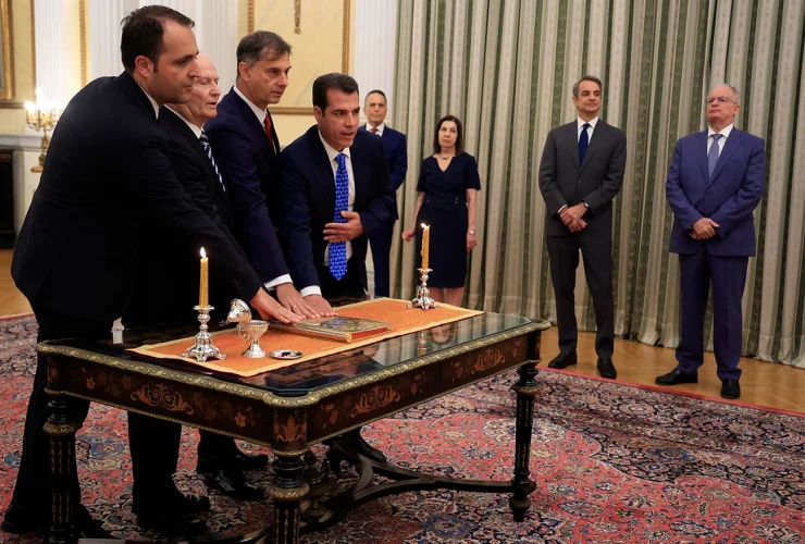 Σε εξέλιξη βρίσκεται η ορκωμοσία των νέων μελών της κυβέρνησης ενώπιον του Προέδρου της Δημοκρατίας Κωνσταντίνου Τασούλα παρουσία του Πρωθυπουργού Κυριάκου Μητσοτάκη. Ορκίζονται: Ο Θάνος Πλεύρης ως υπουργός Μετανάστευσης και Ασύλου, ως υφυπουργός Εξωτερικών ο Χάρης Θεοχάρης, ως υφυπουργός Αγροτικής ...