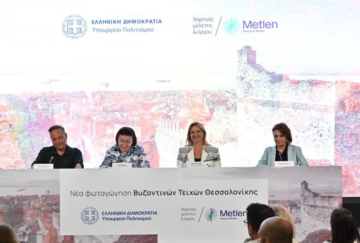 Συνέντευξη Tύπου, για τον φωτισμό των Βυζαντινών Τειχών της πόλης, έδωσε σήμερα στο Αρχαιολογικό Μουσείο Θεσσαλονίκης, η Υπουργός Πολιτισμού Λίνα Μενδώνη με την εκπρόσωπο της METLEN Βίβιαν Μπουζάλη Chief Corporate Affairs and Communication Officer και την σχεδιάστρια του έργου Ελευθερία ...