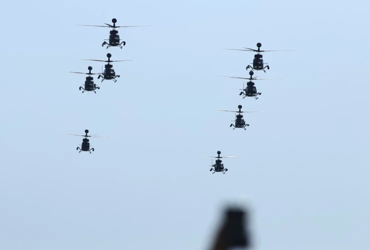 Τα ελικόπτερα της Πολεμικής Αεροπορίας απογειώθηκαν με προορισμό τον ουρανό της Θεσσαλονίκης προκειμένου να συμμετάσχουν στη στρατιωτική παρέλαση της 28ης Οκτωβρίου. Ελικόπτερα, διαφόρων τύπων όπως Huey, Kiowa αναγνώρισης, Apache, Chinook και NH90 πρόκειται να πετάξουν πάνω από το σημείο της ...