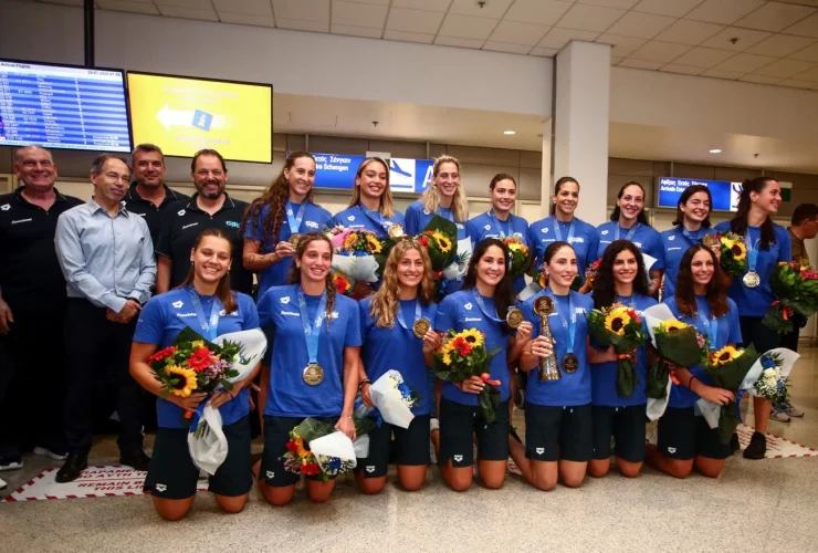 Με τον χρυσό τίτλο του Παγκοσμίου Κυπέλλου στην κατοχή τους και χαμόγελα που μαρτυρούσαν υπερηφάνεια, τα κορίτσια της Εθνικής ομάδας υδατοσφαίρισης έφτασαν το απόγευμα στο αεροδρόμιο «Ελευθέριος Βενιζέλος». Κρατώντας στα χέρια τους το τρόπαιο, δεν έκρυψαν τη συγκίνησή τους για ...