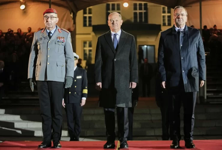 Με τη γνωστή του «χανσεατική νηφαλιότητα», όπως ο ίδιος την αποκάλεσε, ο Όλαφ Σολτς παρακολούθησε την τελετή του «Μεγάλου Αποχαιρετισμού», η οποία διοργανώθηκε προς τιμήν του στο προαύλιο του υπουργείου Άμυνας, στο Βερολίνο. Στην αποχαιρετιστήρια ομιλία του, την τελευταία σε ...