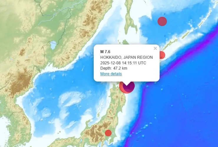 Πολύ δυνατός σεισμός μεγέθους 7,6 Ρίχτερ σημειώθηκε στην Ιαπωνία την Δευτέρα (08.12.2025). Σύμφωνα με το ιαπωνικό γεωδυναμικό ινστιτούτο, ο σεισμός των 7,2 βαθμών της κλίμακας Ρίχτερ, σημειώθηκε στα ανοικτά των ακτών της Ιαπωνίας, κοντά στην επαρχία Αομόρι. ΔΙΑΦΗΜΙΣΗ Το εστιακό ...