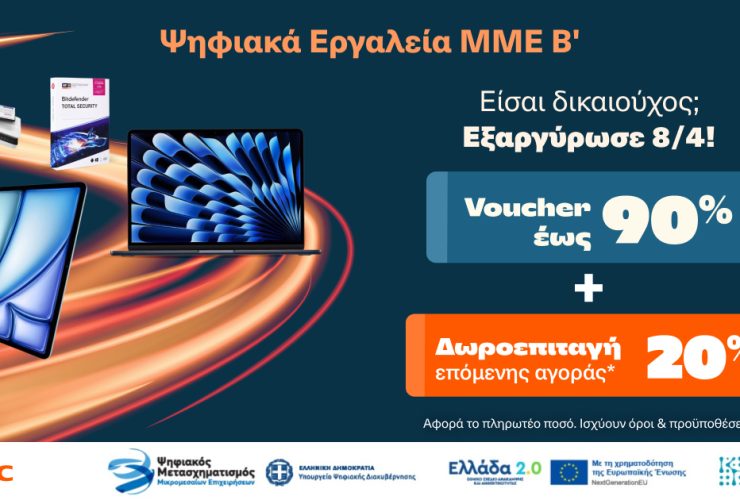 Τα Public καλωσορίζουν τους δικαιούχους του προγράμματος «Ψηφιακά Εργαλεία ΜΜΕ Β» και προσφέρουν τη δυνατότητα εξαργύρωσης των vouchers σε όλα τα καταστήματα Public και Public + home, καθώς και στο public.gr, με επιδότηση έως και 90% για τεχνολογικό εξοπλισμό – ...