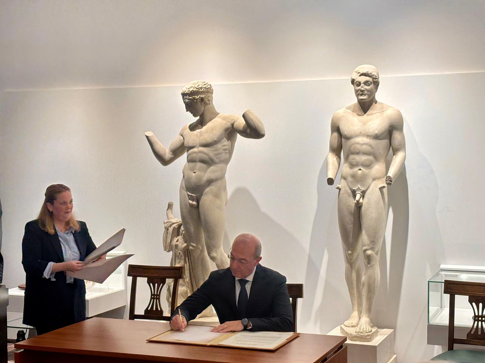 Ο Πρέσβυς της Ιταλίας στην Αθήνα κ. Paolo Cuculi συνόδευσε τον Ιταλό Υπουργό Αθλητισμού και Νεολαίας κ. Abodi, τον Πρόεδρο του Ιδρύματος Milano-Cortina κ. Malagò και τον Διευθύνοντα Σύμβουλο κ. Varnier, καθώς και τον Πρόεδρο της Εθνικής Ολυμπιακής Επιτροπής της Ιταλίας (CONI) κ. Buonfiglio κατά την συμβολική υπογραφή της Ολυμπιακής Εκεχειρίας, την παραμονή της λαμπρής Τελετής Αφής της Φλόγας των Χειμερινών Ολυμπιακών Αγώνων Milano-Cortina 2026, που πραγματοποιήθηκε στην Αρχαία Ολυμπία, στο τόπο όπου γεννήθηκαν οι Ολυμπιακοί Αγώνες.