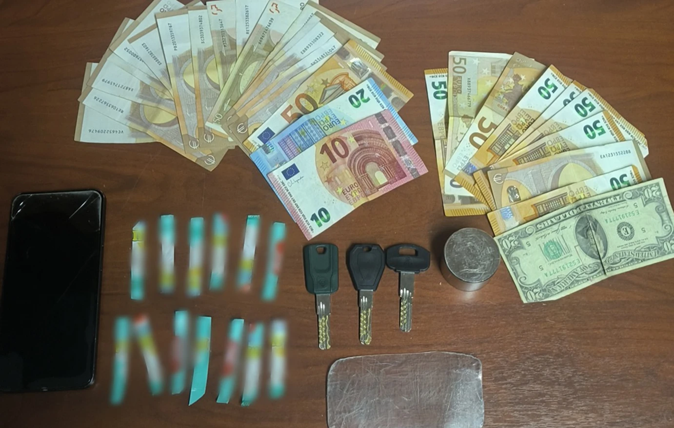 Στην κατοχή του βρέθηκαν και κατασχέθηκαν διαρρηκτικά εργαλεία, ένα κινητό τηλέφωνο, κάρτες SIM εταιρειών κινητής τηλεφωνίας, καθώς και το χρηματικό ποσό των 1.330 ευρώ και 20 δολαρίων ΗΠΑ, τα οποία, σύμφωνα με τις Αρχές, προέρχονται από παράνομη δραστηριότητα.