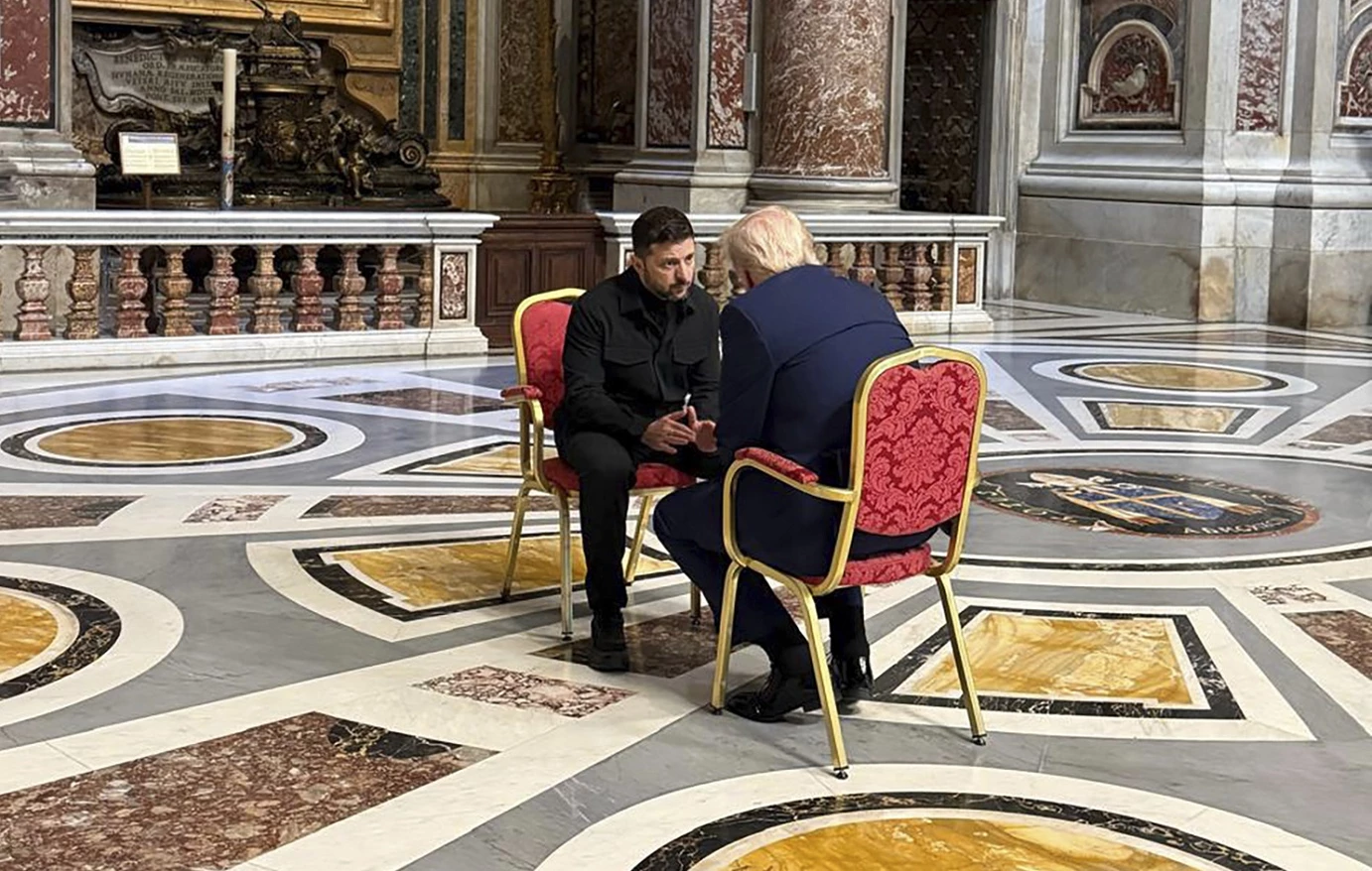Ο oυκρανός πρόεδρος, Βολοντίμιρ Ζελένσκι, αξιοποίησε τα 15 λεπτά της απρόσμενης συνάντησής του με τον πρόεδρο των ΗΠΑ, Ντόναλντ Τραμπ, στο Βατικανό, καλώντας τον να υιοθετήσει αυστηρότερη στάση απέναντι στον Βλαντιμίρ Πούτιν και να επαναφέρει ως προτεραιότητα μια άνευ όρων κατάπαυση του πυρός, σύμφωνα με δύο πηγές που ήταν ενήμερες για τη συνάντηση και μίλησαν στο Axios.