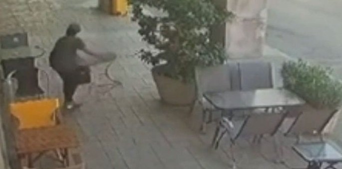 Αντίστοιχο περιστατικό διαδραματίστηκε στη Ρόδο, αυτή τη φορά με καρέκλα. Μία γυναίκα προσεγγίζει κατάστημα της περιοχής και παίρνει την καρέκλα που υπήρχε στον εξωτερικό χώρο.