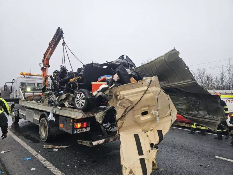 Λίγο πριν τη μία όμως το μεσημέρι στον αυτοκινητόδρομο DN6 – E70, έναν από τους βασικούς οδικούς άξονες της περιοχής, λίγα χιλιόμετρα μετά την Καρασέβες ο χρόνος πάγωσε. Κατά τη διάρκεια προσπέρασης, το όχημα βγήκε στο αντίθετο ρεύμα και συγκρούστηκε μετωπικά με νταλίκα. Η σύγκρουση ήταν σφοδρή, με αποτέλεσμα το βαν να διαλυθεί.