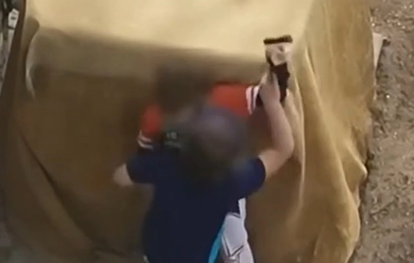 Το έντονο οπτικό υλικό, το οποίο δόθηκε την Παρασκευή στη δημοσιότητα από το περιστατικό της 16ης Φεβρουαρίου, δείχνει τα παιδιά με πιτζάμες Minecraft και Star Wars να παίζουν με ένα πλήρως οπλισμένο όπλο μπρος-πίσω.